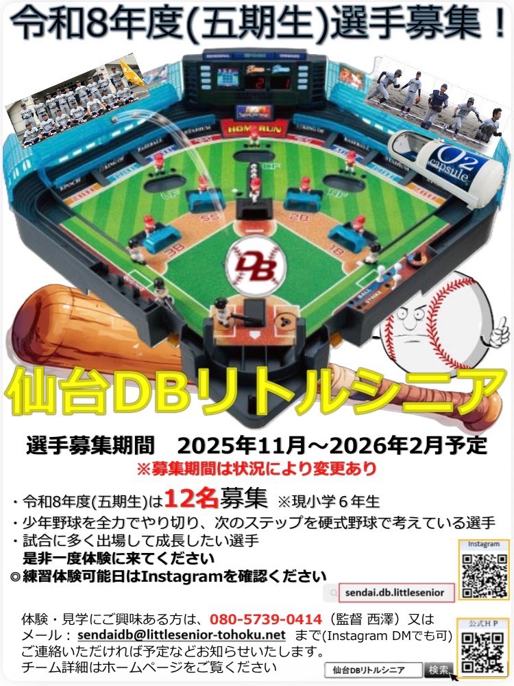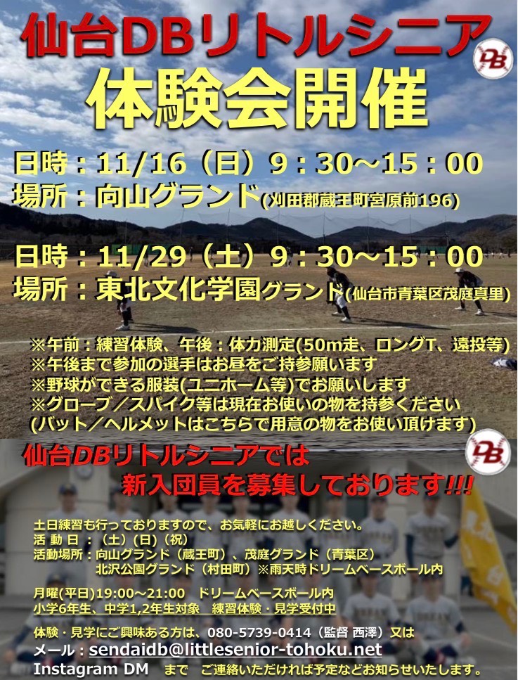 仙台DBリトルシニアでは体験・見学を随時受け付けています。